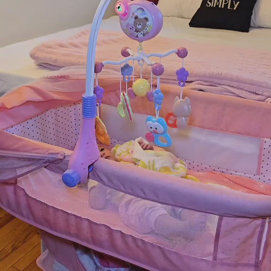 Transform bedtime routines with this crib toy that plays soothing music, projects gentle lights, and includes a timer setting to help your baby drift off peacefully.