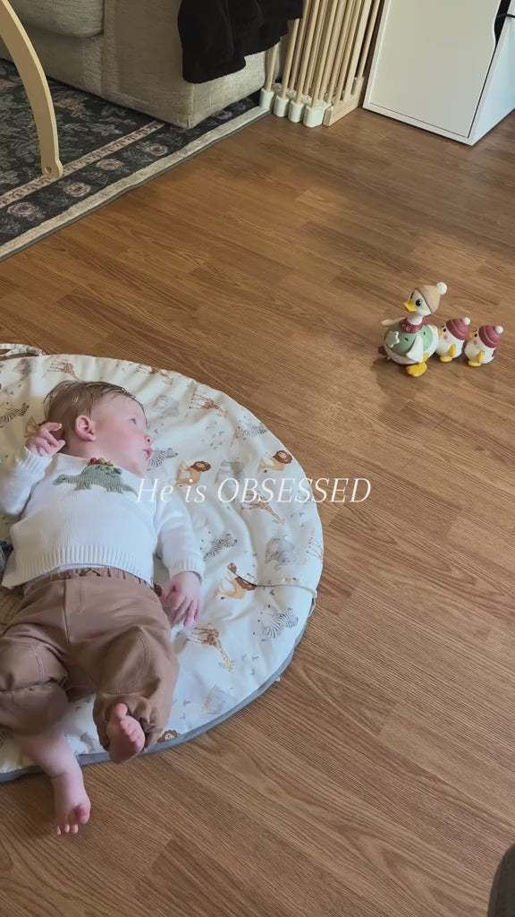 Motor development: Mama duck walks or waddles, baby ducks follow – perfect for crawling practice.