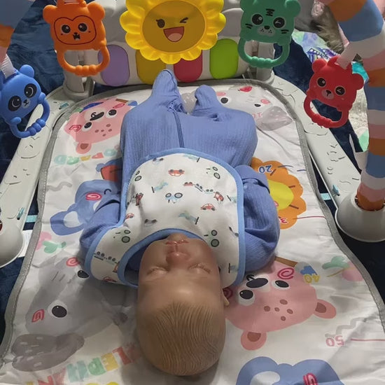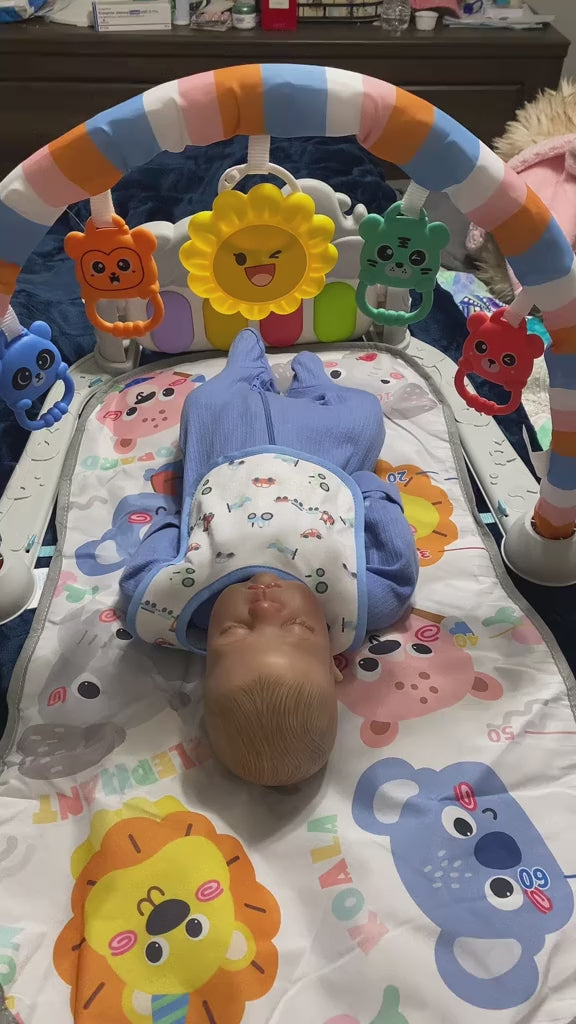 My 6-month-old loves his new Piano Play Mat Gym. The touch-sensitive keys and bright lights keep him entertained during tummy time. He even started to push up to reach for the lights!