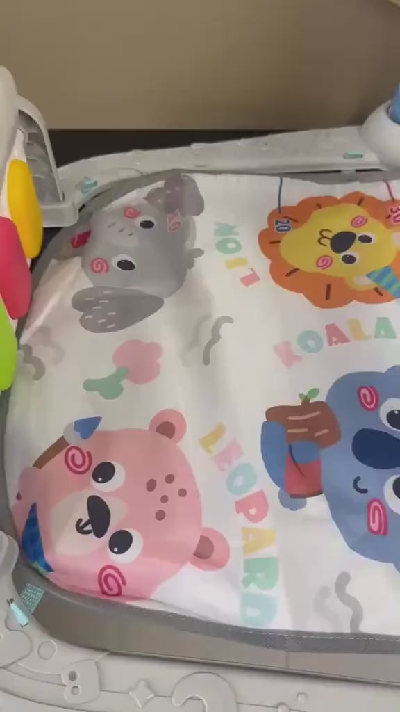 Let your little one kick, crawl, and explore music on this interactive piano gym mat. Featuring touch‑sensitive keys, lights, and melodies, this mat turns floor time into a joyful learning moment.