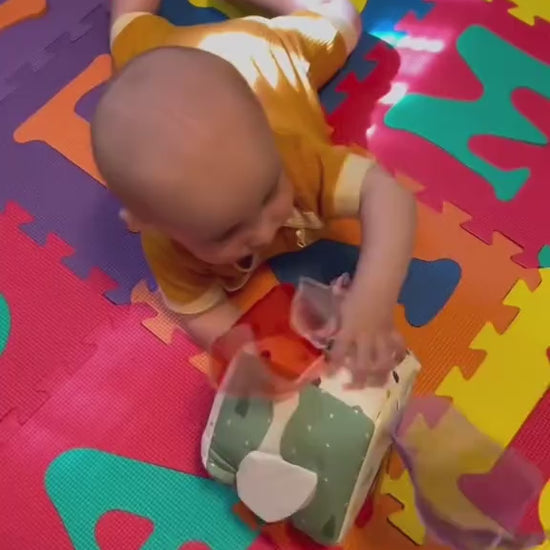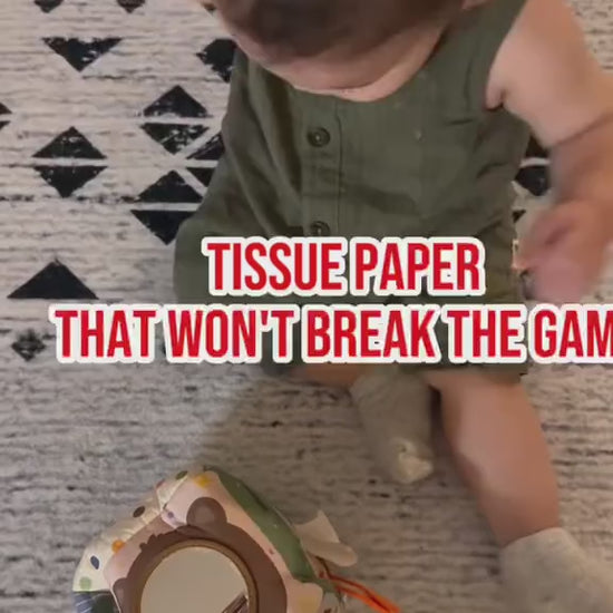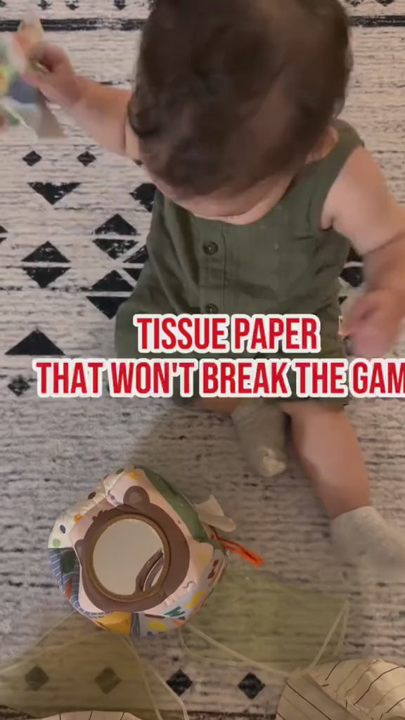 My daughter loves this toy, she can't get enough of the crinkle tissues and colorful scarves. It's so wonderful to see her exploring and learning. Highly recommend for any parents looking for a smart, sensory toy!