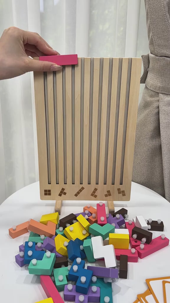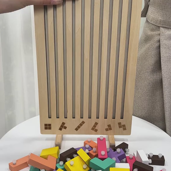 Inspire early math and shape recognition with this beautifully crafted wooden stacking puzzle. This 2-in-1 educational toy combines number blocks and geometric shapes, allowing toddlers to sort, count, and stack while building critical cognitive and motor skills.